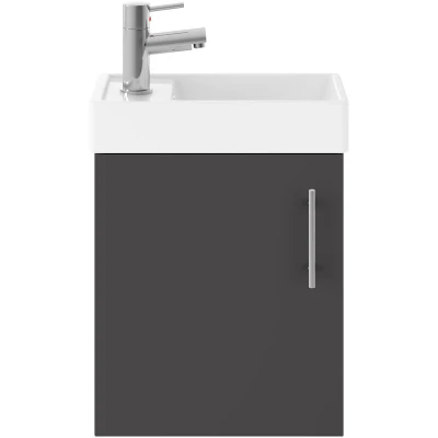 Balterley Cloakroom Wall Hung 1 Door Vanity Unit with Basin, 400mm Gloss Grey