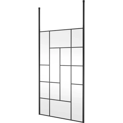 Balterley Contemporary Bathroom Abstract Frame Design 8mm Glass Wetroom Screen with Ceiling Posts, 1950 x 1250 60mm, Matt Black