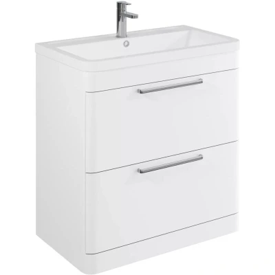 Balterley Contemporary Bathroom Floor Standing Vanity Unit with 2 Soft Close Drawers & 1 Tap Hole Ceramic Basin, Gloss White 800mm