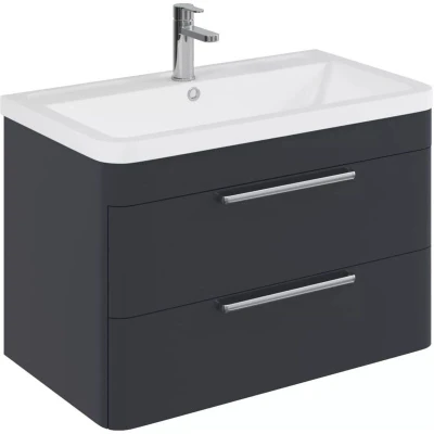 Balterley Contemporary Bathroom Wall Hung Vanity Unit with 2 Soft Close Drawers & 1 Tap Hole Polymarble Basin, Dark Grey, 800mm Elevate your bathroom with this Dark Grey wall-hung vanity, blending contemporary style with generous storage. Its sleek finish creates a refined, inviting space. Built for lasting strength, this vanity is sturdy and easy to install. The Polymarble basin has a smooth, hard-wearing surface that’s simple to clean and perfect for daily use. Product Highlights: Dark Grey: The rich Dark Grey finish adds sophistication to your bathroom, creating a calm and inviting focal point that blends beautifully with contemporary interiors and modern décor. Wall Hung Design: This wall-mounted unit provides two spacious drawers, offering practical storage while keeping your bathroom organised and optimising floor space effectively. Durable Polymarble Basin: Crafted from premium polymarble, the basin includes a single tap hole and overflow, providing a smooth, hard-wearing