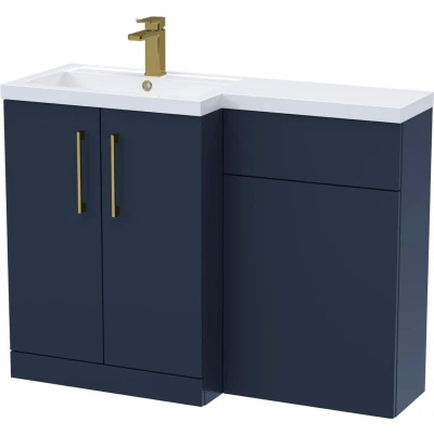 Balterley Dark Blue Bathroom Vanity Unit with Basin & WC, Brushed Brass Handles, Left Hand, 1100mm x 390mm