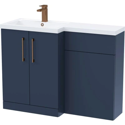Balterley Dark Blue Bathroom Vanity Unit with Basin & WC, Brushed Bronze Handles, Left Hand, 1100mm x 390mm
