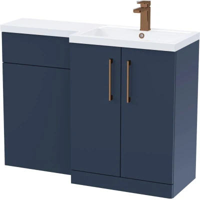 Balterley Dark Blue Bathroom Vanity Unit with Basin & WC, Brushed Bronze Handles, Right Hand, 1100mm x 390mm