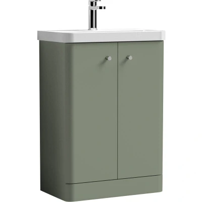 Balterley Floor Standing 2 Door Bathroom Vanity Unit with Ceramic Basin 600mm Satin Green