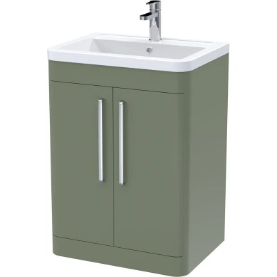 Balterley Floor Standing 2 Door Vanity Unit with Ceramic Basin 600mm Satin Green