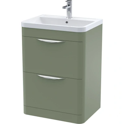 Balterley Floor Standing 2 Drawer Vanity Unit with Ceramic Basin 600mm Satin Green
