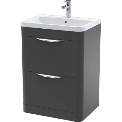 General description The Balterley Wave Vanity Basin Unit combines sleek design with everyday practicality, making it an ideal centerpiece for your bathroom. Crafted with high-quality materials, this 600mm floor standing unit features an elegant soft square design paired with a durable ceramic basin and spacious drawers. The soft close drawers prevent slamming, keeping your bathroom a calming haven of relaxation while providing storage for your bathroom essentials. Technical specifications Dimensions: H:840 x W:610 x D:450 mm Finish: Satin Dark Grey Basin: Rectangular Soft-Edge Ceramic Sink with 1 tap hole Drawers: 2 Soft-Close Drawers Installation Supplied Fully Assembled: Delivered ready to install with no flatpack hassle. Simply put it in place and have it plumbed in for an instant upgrade to your space. Usage Designed for comfortable daily use with a stylish depth and practicality. Soft-close mechanism for smooth, quiet closure of drawers. Other information Warranty: Backed by a