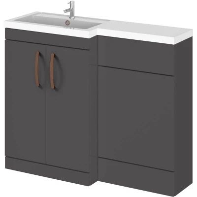 Balterley Gloss Grey Bathroom Vanity Unit with Basin & WC, Copper Handles, Left Hand, 1100mm x 390mm