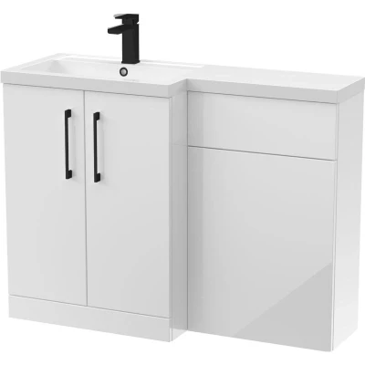 Balterley Gloss White Bathroom Vanity Unit with Basin & WC, Black Handles, Left Hand, 1100mm x 390mm