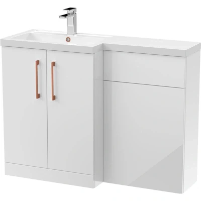 Balterley Gloss White Bathroom Vanity Unit with Basin & WC, Copper Handles, Left Hand, 1100mm x 390mm