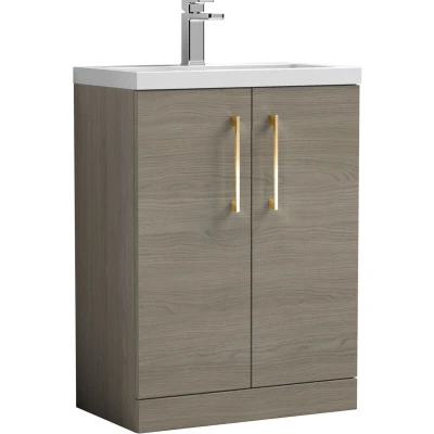 ManoManoBalterley Level Compact Bathroom Cloakroom Vanity Basin Unit with Ceramic Basin, Brushed Brass Handles, 600mm, Mid Oak Upgrade your bathroom with the Balterley Level compact floor standing vanity basin unit, combining practical storage with sleek style. Available in a range of finishes, basin options and handle finishes, this unit will be a stunning focal point in any bathroom or cloakroom. Product Highlights: Woodgrain Mid Oak Finish: A natural mid oak woodgrain finish rich in warmth and character, complemented by the gloss white basin for a timeless blend of organic texture and clean modern lines. Brushed Brass Handles: Brushed brass handles provide a warm, premium contrast and a comfortable, durable grip, adding style and elegance to your bathroom. Compact Cloakroom Design: Space-saving floor standing unit is ideal for small bathrooms or en-suites, offering practical storage without cluttering the floor. Soft Close Doors: Smooth soft close doors prevent slamming, reduce noise, and