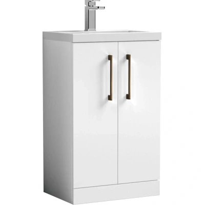 ManoManoBalterley Level Compact Bathroom Cloakroom Vanity Basin Unit with Ceramic Basin, Brushed Bronze Handles, 500mm, Gloss White Upgrade your bathroom with the Balterley Level compact floor standing vanity basin unit, combining practical storage with sleek style. Available in a range of finishes, basin options and handle finishes, this unit will be a stunning focal point in any bathroom or cloakroom. Product Highlights: Gloss White Finish: A flawless gloss white finish that reflects light for a bright, spacious feel, seamlessly pairing with the matching gloss white basin for a sleek, unified look. Brushed Bronze Handles: Brushed bronze handles add a warm, premium contrast and provide a comfortable, durable grip, combining style and functionality. Compact Cloakroom Design: Space-saving floor standing unit is ideal for small bathrooms or en-suites, offering practical storage without cluttering the floor. Soft Close Doors: Smooth soft close doors prevent slamming, reduce noise, and protect