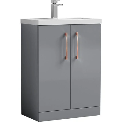 Balterley Level Compact Bathroom Cloakroom Vanity Basin Unit with Ceramic Basin, Copper Handles, 600mm, Satin Grey