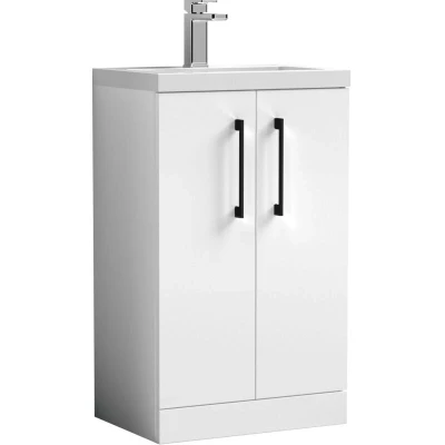 Balterley Level Compact Bathroom Cloakroom Vanity Basin Unit with Polymarble Basin, Black Handles, 500mm, Gloss White