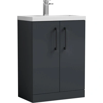 Satin Dark Grey Finish: A luxurious satin dark grey finish offering depth and elegance, perfectly offset by the gloss white basin for a modern designer contrast. Black Handles: Black-finished handles provide a sleek, contemporary contrast and a comfortable, durable grip for daily use in any bathroom space. Compact Cloakroom Design: Space-saving floor standing unit is ideal for small bathrooms or en-suites, offering practical storage without cluttering the floor. Soft Close Doors: Smooth soft close doors prevent slamming, reduce noise, and protect the unit from damage, creating a quieter, safer bathroom environment. Generous Storage: Includes an internal shelf to neatly organise toiletries, towels, and bathroom essentials, keeping your space tidy and clutter-free. Polymarble Basin Included: Supplied with a high-quality polymarble basin pre-drilled with one tap hole, offering a smooth, scratch-resistant, and easy-clean surface. Dimensions: H: 840 x W: 605 x D: 360mm Warranty: 5-year manufacturer’s guarantee