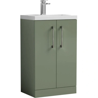 Satin Green Finish: A distinctive satin green finish with a gentle sheen, bringing a touch of nature indoors while the gloss white basin keeps the look crisp and contemporary. Brushed Pewter Handles: Brushed pewter handles create a modern, premium contrast and provide a comfortable, durable grip for effortless daily use. Compact Cloakroom Design: Space-saving floor standing unit is ideal for small bathrooms or en-suites, offering practical storage without cluttering the floor. Soft Close Doors: Smooth soft close doors prevent slamming, reduce noise, and protect the unit from damage, creating a quieter, safer bathroom environment. Generous Storage: Includes an internal shelf to neatly organise toiletries, towels, and bathroom essentials, keeping your space tidy and clutter-free. Polymarble Basin Included: Supplied with a high-quality polymarble basin pre-drilled with one tap hole, offering a smooth, scratch-resistant, and easy-clean surface. Dimensions: H: 840 x W: 503 x D: 353mm Warranty: 5-year manufacturer’s guarantee