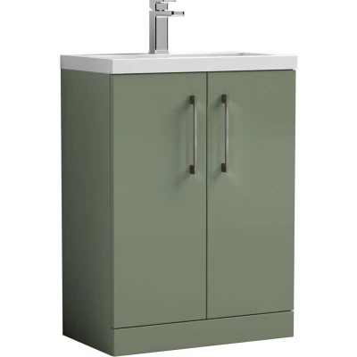 Satin Green Finish: A distinctive satin green finish with a gentle sheen, bringing a touch of nature indoors while the gloss white basin keeps the look crisp and contemporary. Brushed Pewter Handles: Brushed pewter handles create a modern, premium contrast and provide a comfortable, durable grip for effortless daily use. Compact Cloakroom Design: Space-saving floor standing unit is ideal for small bathrooms or en-suites, offering practical storage without cluttering the floor. Soft Close Doors: Smooth soft close doors prevent slamming, reduce noise, and protect the unit from damage, creating a quieter, safer bathroom environment. Generous Storage: Includes an internal shelf to neatly organise toiletries, towels, and bathroom essentials, keeping your space tidy and clutter-free. Polymarble Basin Included: Supplied with a high-quality polymarble basin pre-drilled with one tap hole, offering a smooth, scratch-resistant, and easy-clean surface. Dimensions: H: 840 x W: 603 x D: 353mm Warranty: 5-year manufacturer’s guarantee