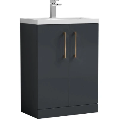 ManoManoBalterley Level Compact Bathroom Cloakroom Vanity Basin Unit with Polymarble Basin, Copper Handles, 600mm, Satin Dark Grey Upgrade your bathroom with the Balterley Level compact floor standing vanity basin unit, combining practical storage with sleek style. Available in a range of finishes, basin options and handle finishes, this unit will be a stunning focal point in any bathroom or cloakroom. Product Highlights: Satin Dark Grey Finish: A luxurious satin dark grey finish offering depth and elegance, perfectly offset by the gloss white basin for a modern designer contrast. Copper Handles: Copper-Finished Handles Provide A Warm, Premium Contrast And A Comfortable, Durable Grip For Daily Use. Compact Cloakroom Design: Space-saving floor standing unit is ideal for small bathrooms or en-suites, offering practical storage without cluttering the floor. Soft Close Doors: Smooth soft close doors prevent slamming, reduce noise, and protect the unit from damage, creating a quieter, safer