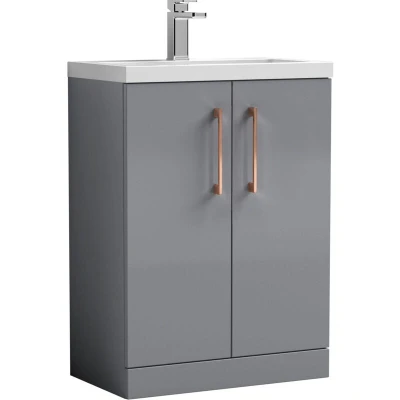 Balterley Level Compact Bathroom Cloakroom Vanity Basin Unit with Polymarble Basin, Copper Handles, 600mm, Satin Grey