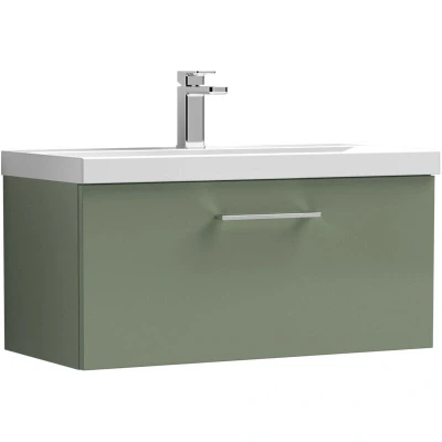 Balterley Level Contemporary Bathroom 1 Drawer Wall Hung Thin Edge Vanity Unit Basin, Satin Green, 800mm