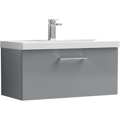 Balterley Level Contemporary Bathroom 1 Soft Close Drawer & Thin Edge Wall Hung Vanity Unit Basin, Satin Grey, 800mm