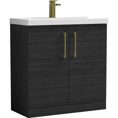 Balterley Level Contemporary Bathroom 2 Soft Close Door Floor Standing Vanity Unit & Mid-Edge Basin, Charcoal Black, 810mm The Balterley Level 800mm floor standing vanity unit combines bold charcoal black styling with brushed brass handles for a modern, elegant bathroom upgrade. Soft close doors and ample storage make daily routines effortless. This Balterley Level vanity unit with basin offers space-saving storage, easy-clean surfaces, and smooth soft close doors for comfort and practicality. Perfect for UK bathrooms seeking style, durability, and convenience. Product Highlights: Modern Charcoal Black Finish: Smooth charcoal black surface creates a bold, modern look while being easy to wipe clean, keeping your bathroom tidy and stylish every day. Brushed Brass Handle Detail: Elegant brushed brass D-shaped handles offer a luxurious touch while remaining practical, comfortable to use, and complementing the overall design. Spacious Two-Door Storage: Twin doors reveal ample internal