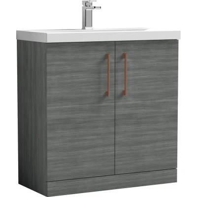 Balterley Level Contemporary Bathroom Floor Standing 2 Door Vanity Unit & Mid Edge Basin, Anthracite Woodgrain, 800mm