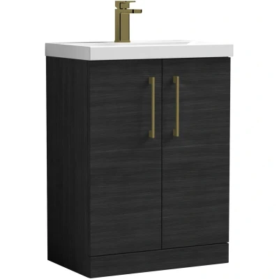 Balterley Level Contemporary Bathroom Floor Standing 2 Door Vanity Unit & Mid Edge Basin, Charcoal Black, 600mm