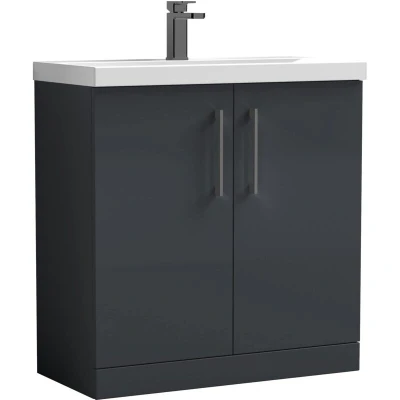 Balterley Level Contemporary Bathroom Floor Standing 2 Door Vanity Unit & Mid Edge Basin, Dark Grey, 800mm