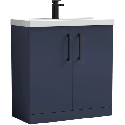 Balterley Level Contemporary Bathroom Floor Standing 2 Door Vanity Unit & Mid Edge Basin, Midnight Blue, 800mm