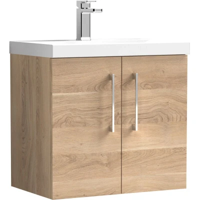 Balterley Level Contemporary Bathroom Wall Hung 2-Door Vanity & Basin, Bleached Oak, 600mm The Balterley 600mm Wall Hung 2-Door Vanity with Thin-Edge Basin combines style, storage, and space-saving design to transform your bathroom. Its sleek Bleached Oak finish and soft-close doors create a sophisticated, functional, and easy-to-clean space. Upgrade your bathroom with this wall hung vanity in Bleached Oak, offering generous storage and a sleek vitreous china basin for effortless cleaning. Perfect for modern bathrooms, the 600mm unit maximises space while keeping your essentials neatly organised. Product Highlights: Bleached Oak Finish: Warm, natural Bleached Oak adds a stylish touch, complementing modern or traditional interiors with an attractive, designer-inspired look. Space-Saving Design: Wall-hung design frees floor space, makes cleaning easier, gives a spacious look, allows adjustable height, improves airflow, and adds a sleek, modern touch. Soft-Close Doors: Gentle, silent