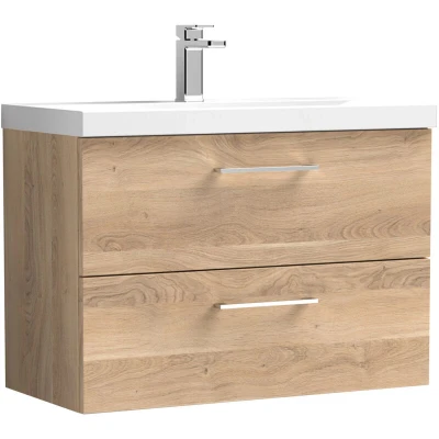 Balterley Level Contemporary Bathroom Wall Hung 2 Drawer Vanity & Basin, Bleached Oak, 800mm