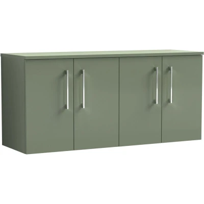 Balterley Level Modern Bathroom 1200mm Wall Hung 4 Door Vanity Unit with Worktop, Soft Close Doors, Satin Green