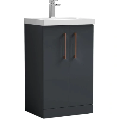 Balterley Level Modern Bathroom 2 Soft Close Door & Mid Edge Vanity Unit Basin, Dark Grey, 500mm