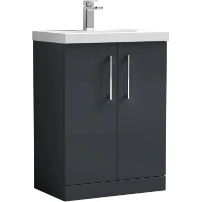 ManoManoBalterley Modern Bathroom 2 Soft Close Door Floor Standing Vanity Unit & Rectangular Mid-Edge Basin, Dark Grey, 600 mm Enhance your bathroom with the Balterley 600mm Floor Standing 2-Door Vanity in Dark Grey. Its soft-close doors, mid-edge vitreous china basin, and spacious storage make organising essentials simple, stylish, and enjoyable. The Balterley 600mm floor-standing vanity features a sleek dark grey finish, soft-close doors, and a durable mid-edge vitreous china basin. Its design keeps your bathroom organised, elegant, easy to maintain, and clutter-free. Product Highlights: Dark Grey Finish: Elegant dark grey finish adds a contemporary, stylish touch while keeping surfaces polished and easy to maintain, giving your bathroom a neat, modern, and welcoming look. Floor Standing Design: Freestanding vanity provides a stable base while maximising floor space, making cleaning simple and helping your bathroom feel open, organised, and spacious. Vitreous China Basin: Durable mid-edge