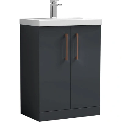 Balterley Level Modern Bathroom 2 Soft Close Door & Mid Edge Vanity Unit Basin, Dark Grey, 600mm