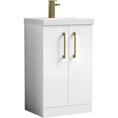 Balterley Level Modern Bathroom 2 Soft Close Door & Mid-Edge Vanity Unit Basin, Gloss White, 500mm The Balterley Level 500mm Floor Standing Vanity Unit combines practical storage with a compact, easy-to-clean design, perfect for everyday family bathrooms. Its gloss white finish brightens the room while neatly concealing toiletries and cleaning supplies. This floor standing vanity unit includes a durable vitreous china basin with a single tap hole and soft-close doors for smooth, quiet operation. Ideal for small to medium bathrooms, it provides space-saving storage with a sleek, modern look that’s simple to maintain. Product Highlights: Modern Gloss White Finish: A high-gloss white painted surface gives a fresh, clean look that brightens your bathroom, reflects light, and stays easy to wipe clean for everyday family use. Compact Floor Standing Storage: The 500mm cabinet with two doors provides generous storage for toiletries and cleaning products, keeping bathrooms organised without