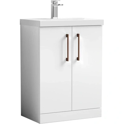 Balterley Level Modern Bathroom 2 Soft Close Door & Mid Edge Vanity Unit Basin, Gloss White, 600mm