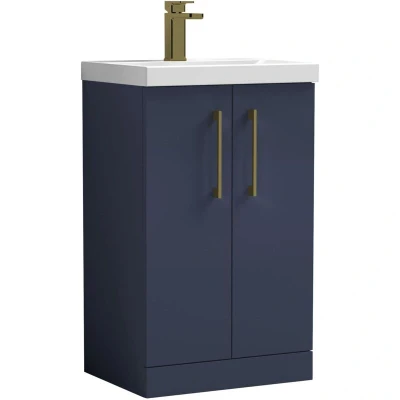 Balterley Level Modern Bathroom 2 Soft Close Door & Mid Edge Vanity Unit Basin, Midnight Blue, 500mm