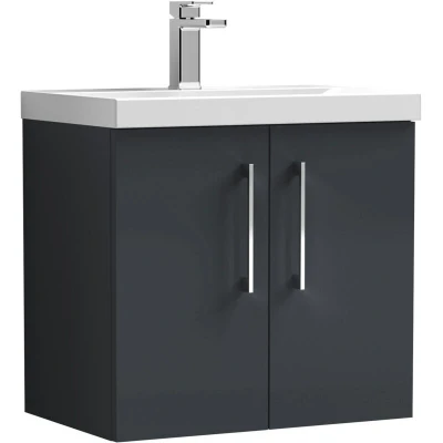 Balterley Level Modern Bathroom 2 Soft Close Door & Mid Edge Wall Hung Vanity Unit Basin, Dark Grey, 600mm