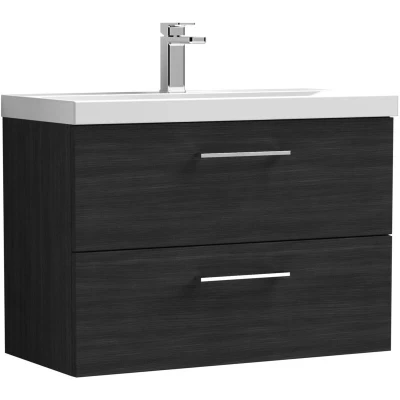 Balterley Level Modern Bathroom 2 Soft Close Drawer Wall Hung Vanity Unit & Thin Edge Basin, Charcoal Black, 800mm