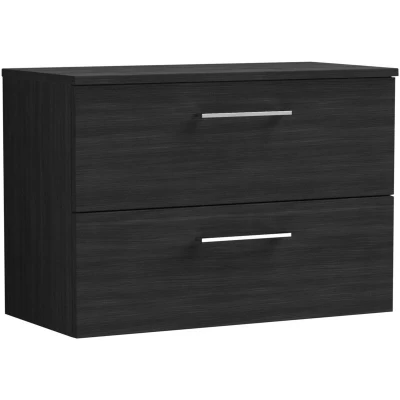 Balterley Level Modern Bathroom 2 Soft Close Drawer Wall Hung Vanity Unit with Worktop, Charcoal Black, 800 mm