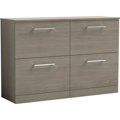 Balterley Level Modern Bathroom 4 Drawer Floor Standing Vanity Unit with Worktop & Handles, Grey Vicenza Oak, 1205 mm