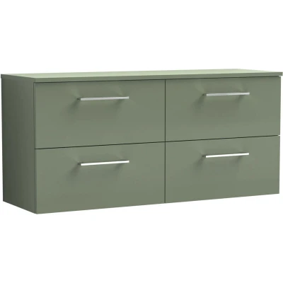 Balterley Level Modern Bathroom 4 Soft Close Drawer Wall Hung Vanity Unit with Worktop, Satin Green, 1200 mm