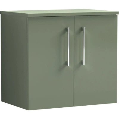 Balterley Level Modern Bathroom 600mm Wall Hung 2 Door Vanity Unit with Worktop, Soft Close Doors, Satin Green