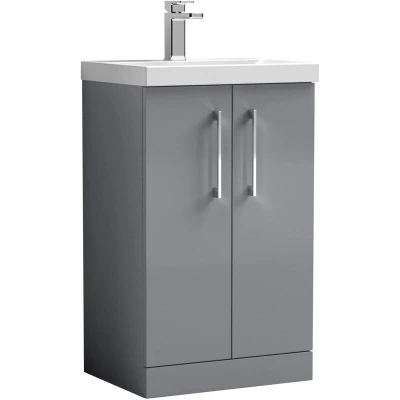 Balterley Level Modern Bathroom Floor Standing 2 Door Vanity & Mid Edge Ceramic Basin, Satin Grey, 500mm