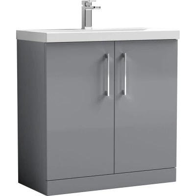 Balterley Level Modern Bathroom Floor Standing 2 Door Vanity & Mid Edge Ceramic Basin, Satin Grey, 800mm