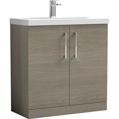 Balterley Level Modern Bathroom Floor Standing 2 Door Vanity & Mid Edge Ceramic Basin, Solace Oak, 800mm