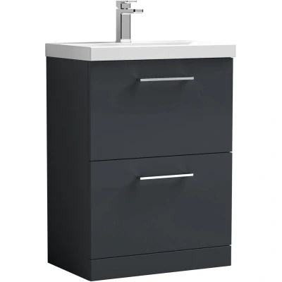 Balterley Level Modern Bathroom Floor Standing 2 Drawer Vanity & Mid Edge Ceramic Basin, Dark Grey, 600mm
