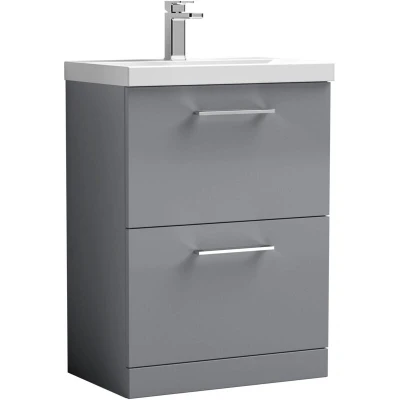 Balterley Level Modern Bathroom Floor Standing 2 Drawer Vanity & Mid Edge Ceramic Basin, Satin Grey, 600mm